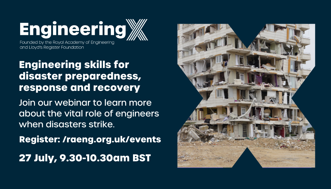 Join the Royal Academy of Engineering for Safety webinar on engineering skills in disaster preparedness, response and recovery on Thursday, July 27th between 9.30-10.30am BST on Zoom.